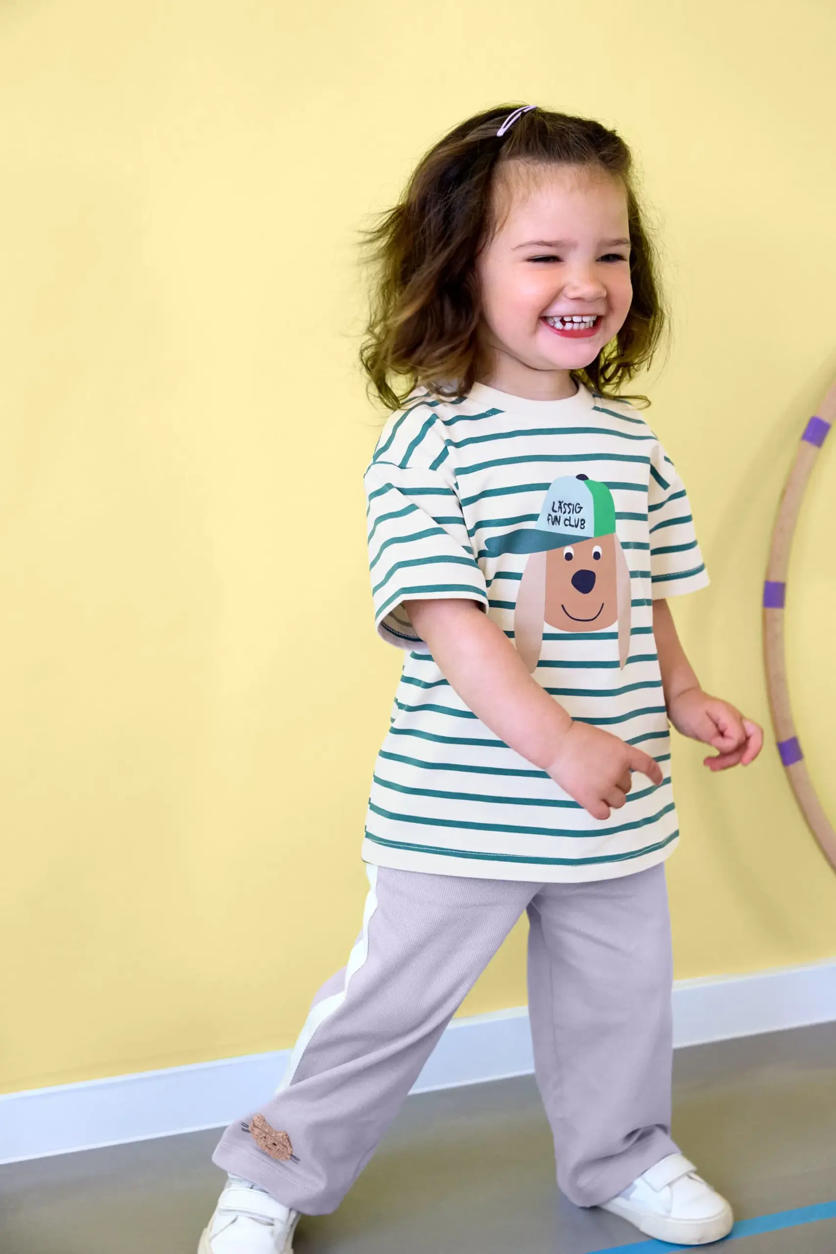 Lässig KINDER T-SHIRT – BIO BAUMWOLLE, HUND GESTREIFT